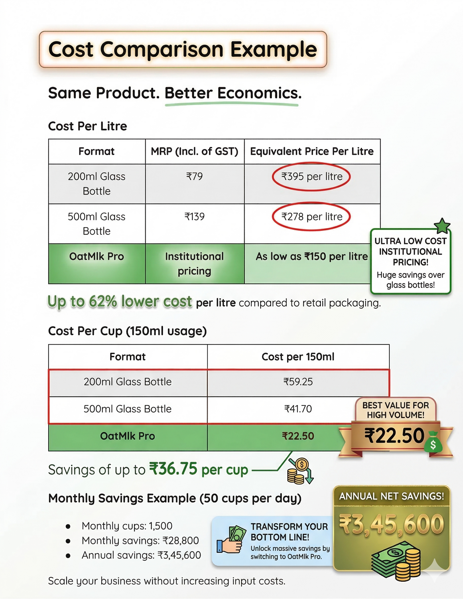 By eliminating retail packaging and associated costs, businesses can procure OatMlk Pro